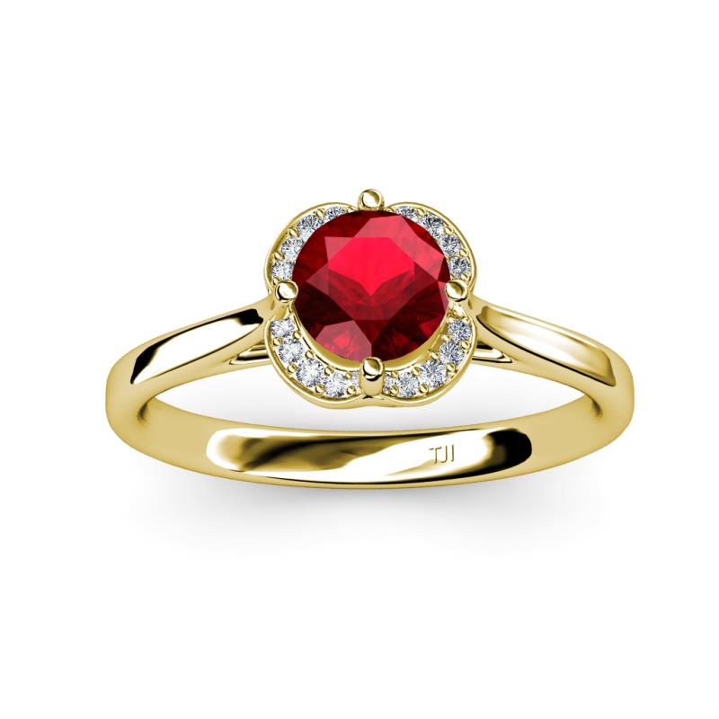 Round Ruby and Diamond 1.01 ctw Womens Halo Engagement Ring 14K Yellow Gold More Details ...