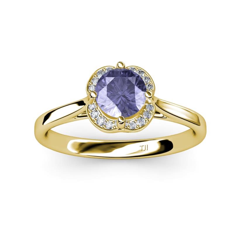 Round Tanzanite and Diamond 0.98 ctw Womens Halo Engagement Ring 14K Yellow Gold More Details ...