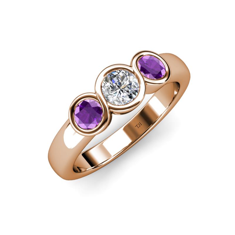 Diamond and Amethyst Infinity Womens Three Stone Engagement Ring 0.90 ctw 18K Rose Gold More Details ...