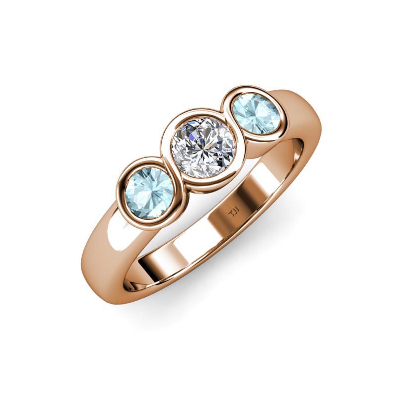 Diamond and Aquamarine Infinity Womens Three Stone Engagement Ring 0.90 ctw 14K Rose Gold More Details ...