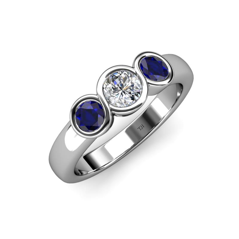 Diamond and Blue Sapphire Infinity Womens Three Stone Engagement Ring 1.03 ctw 18K White Gold More Details ...