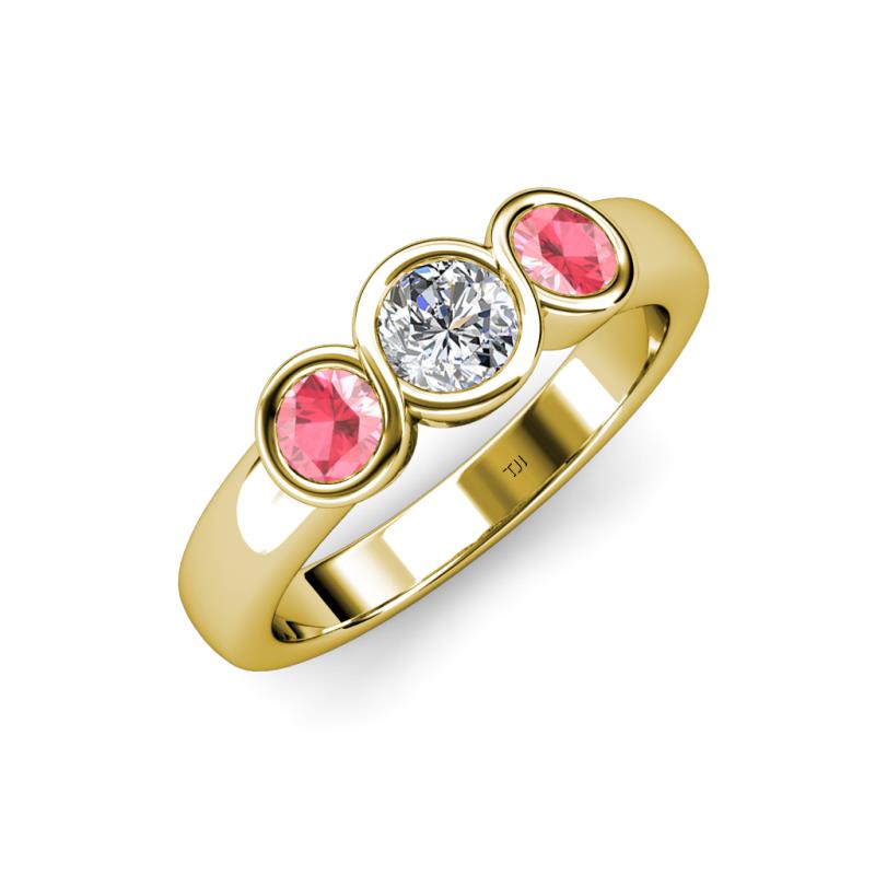 Diamond and Pink Tourmaline Infinity Womens Three Stone Engagement Ring 0.90 ctw 14K Yellow Gold More Details ...
