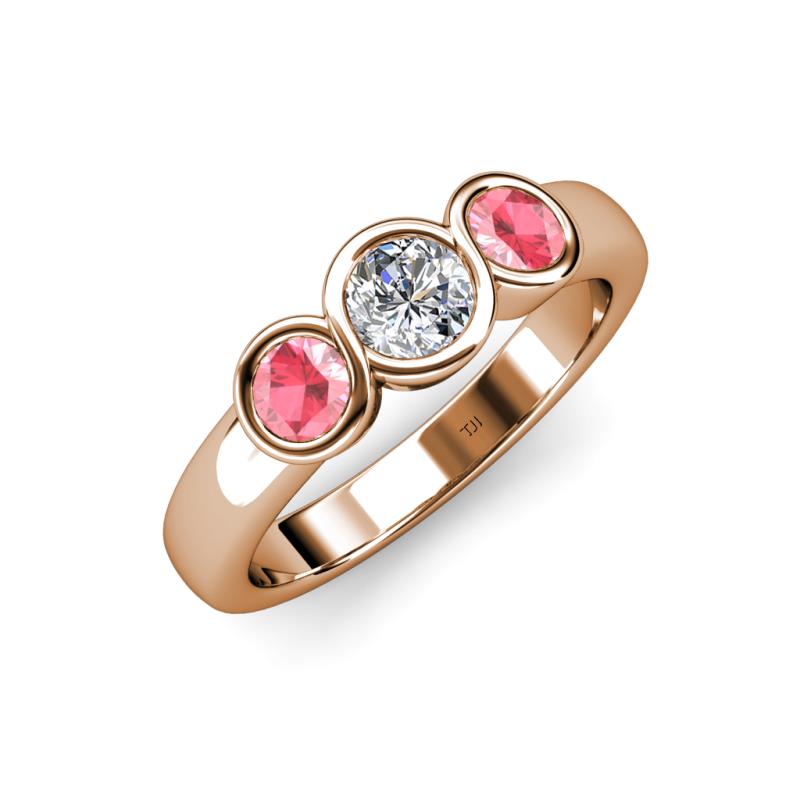 Diamond and Pink Tourmaline Infinity Womens Three Stone Engagement Ring 0.90 ctw 14K Rose Gold More Details ...