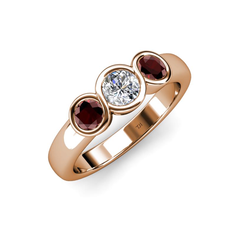Red Garnet and Lab Grown Diamond Infinity Womens Three Stone Engagement Ring 1.13 ctw 18K Rose Gold More Details ...