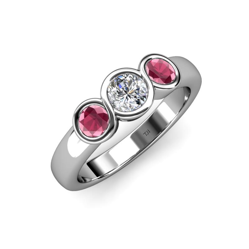 Rhodolite Garnet and Lab Grown Diamond Infinity Womens Three Stone Engagement Ring 1.13 ctw 14K White Gold More Details ...