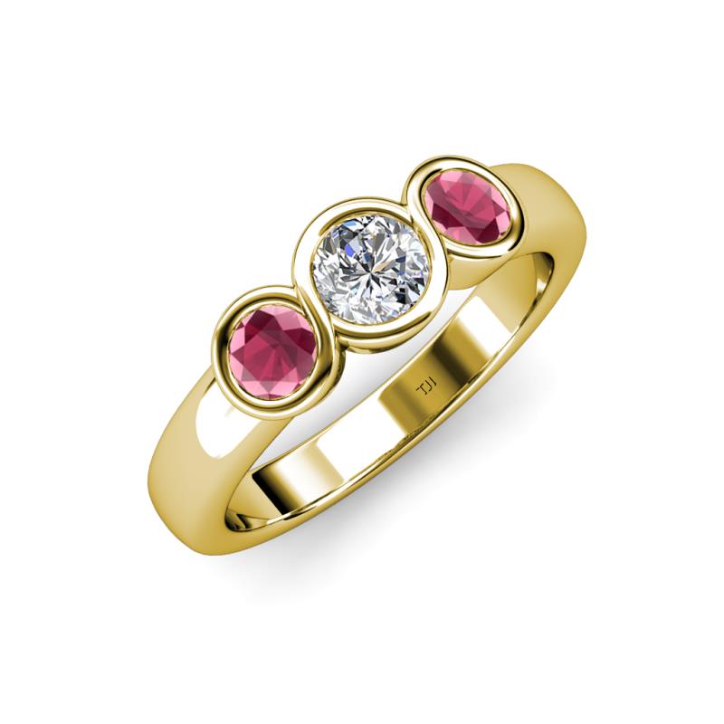 Rhodolite Garnet and Lab Grown Diamond Infinity Womens Three Stone Engagement Ring 1.13 ctw 14K Yellow Gold More Details ...
