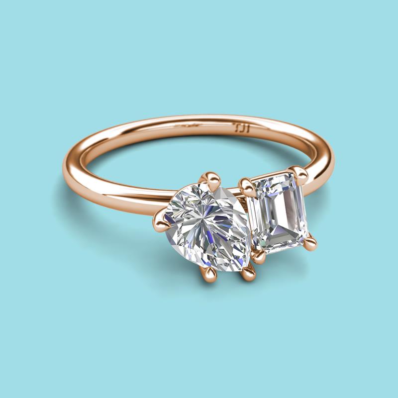 Pear & Emerald Shape GIA Certified Diamond 2.70 ctw Four Prong Womens 2 Stone Duo Engagement Ring 18K Rose Gold More Details ...