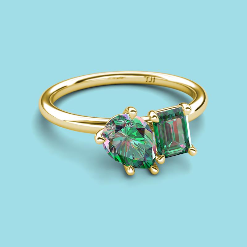 Pear & Emerald Shape Lab Created Alexandrite 3.03 ctw Four Prong Womens 2 Stone Duo Engagement Ring 18K Yellow Gold More Details ...