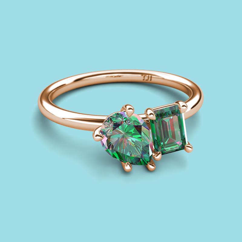 Pear & Emerald Shape Lab Created Alexandrite 3.03 ctw Four Prong Womens 2 Stone Duo Engagement Ring 10K Rose Gold More Details ...