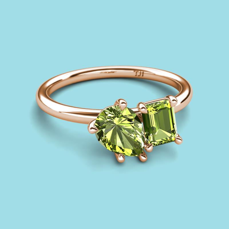 Pear & Emerald Shape Peridot 2.60 ctw Four Prong Womens 2 Stone Duo Engagement Ring 14K Rose Gold More Details ...