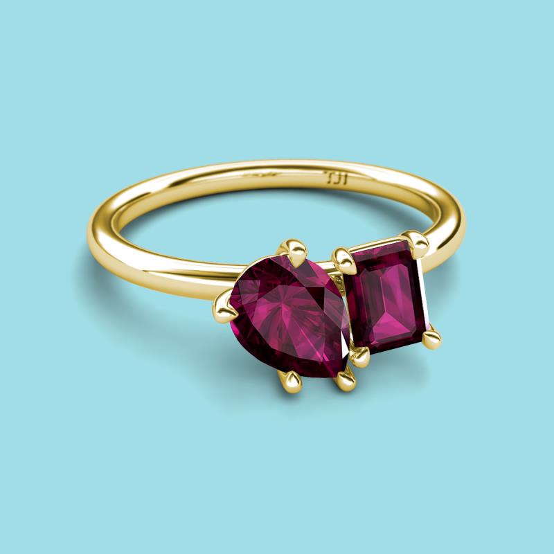 Pear & Emerald Shape Rhodolite Garnet 2.75 ctw Four Prong Womens 2 Stone Duo Engagement Ring 18K Yellow Gold More Details ...
