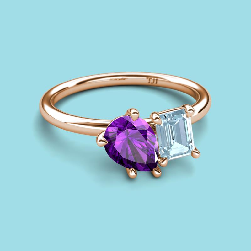 Pear Shape Amethyst & Emerald Shape Aquamarine 2.05 ctw Four Prong Womens 2 Stone Duo Engagement Ring 10K Rose Gold More Details ...