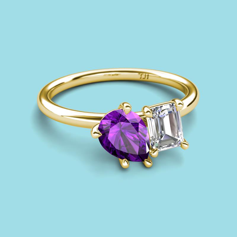 Pear Shape Amethyst & Emerald Shape GIA Certified Diamond 2.15 ctw Four Prong Womens 2 Stone Duo Engagement Ring 18K Yellow Gold More Details ...