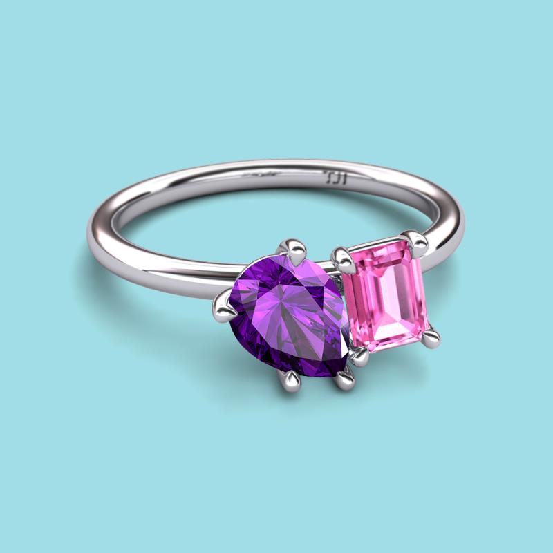 Pear Shape Amethyst & Emerald Shape Pink Sapphire 2.15 ctw Four Prong Womens 2 Stone Duo Engagement Ring 18K White Gold More Details ...
