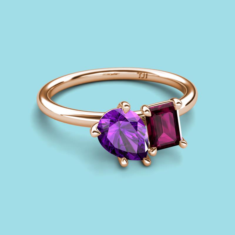 Pear Shape Amethyst & Emerald Shape Rhodolite Garnet 2.45 ctw Four Prong Womens 2 Stone Duo Engagement Ring 10K Rose Gold More Details ...