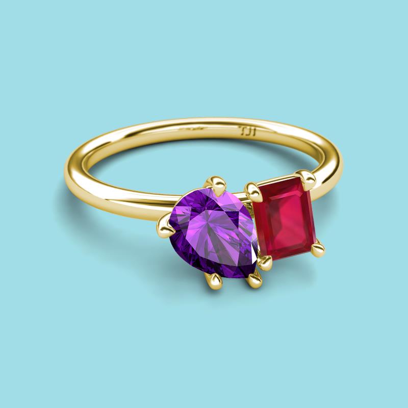 Pear Shape Amethyst & Emerald Shape Ruby 2.05 ctw Four Prong Womens 2 Stone Duo Engagement Ring 14K Yellow Gold More Details ...
