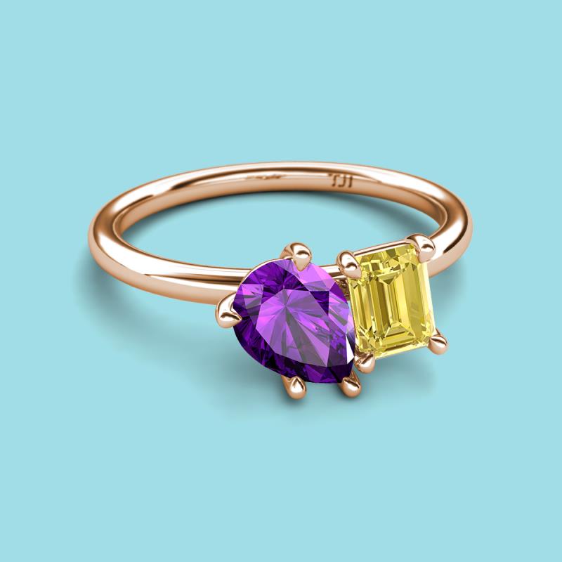 Pear Shape Amethyst & Emerald Shape Yellow Sapphire 2.15 ctw Four Prong Womens 2 Stone Duo Engagement Ring 10K Rose Gold More Details ...