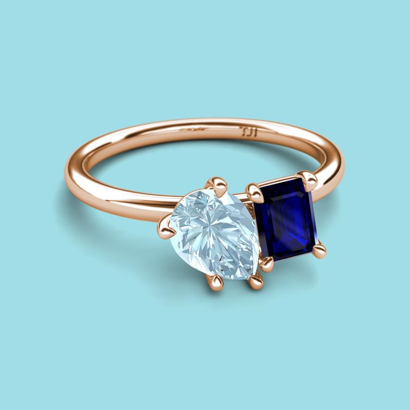 Pear Shape Aquamarine & Emerald Shape Blue Sapphire 2.10 ctw Four Prong Womens 2 Stone Duo Engagement Ring 18K Rose Gold More Details ...