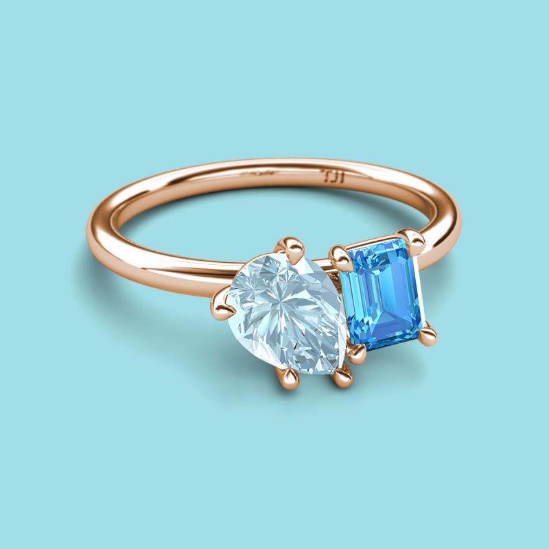 Find a beautiful symbol of everlasting love, with our new collection of duo two-stone ring. A pair of Pear Shape Aquamarine shimmering alongside of a luminous Emerald Shape Blue Topaz crafted beautifully is all set to represent two of you together.