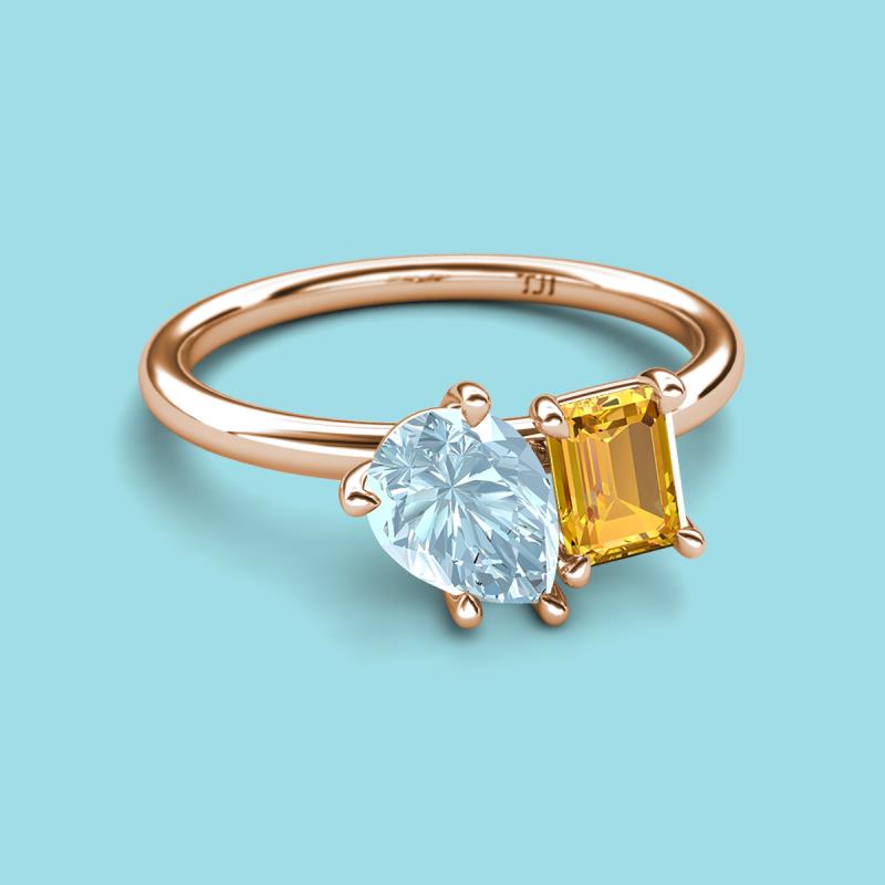 Pear Shape Aquamarine & Emerald Shape Citrine 2.10 ctw Four Prong Womens 2 Stone Duo Engagement Ring 10K Rose Gold More Details ...