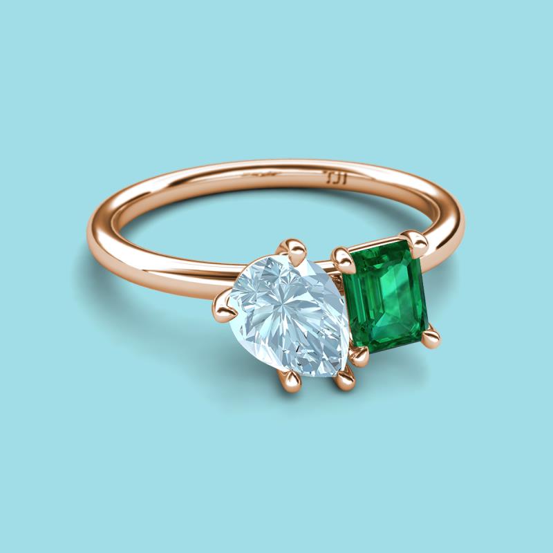 Pear Shape Aquamarine & Emerald Shape Emerald 2.00 ctw Four Prong Womens 2 Stone Duo Engagement Ring 18K Rose Gold More Details ...