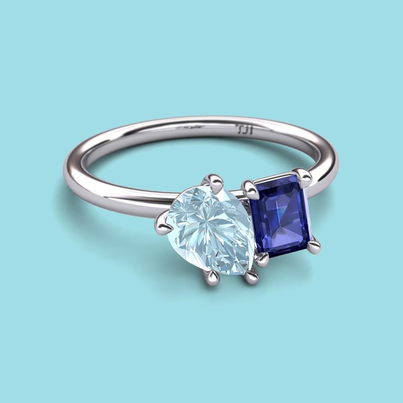 Pear Shape Aquamarine & Emerald Shape Iolite 2.15 ctw Four Prong Womens 2 Stone Duo Engagement Ring 18K White Gold More Details ...