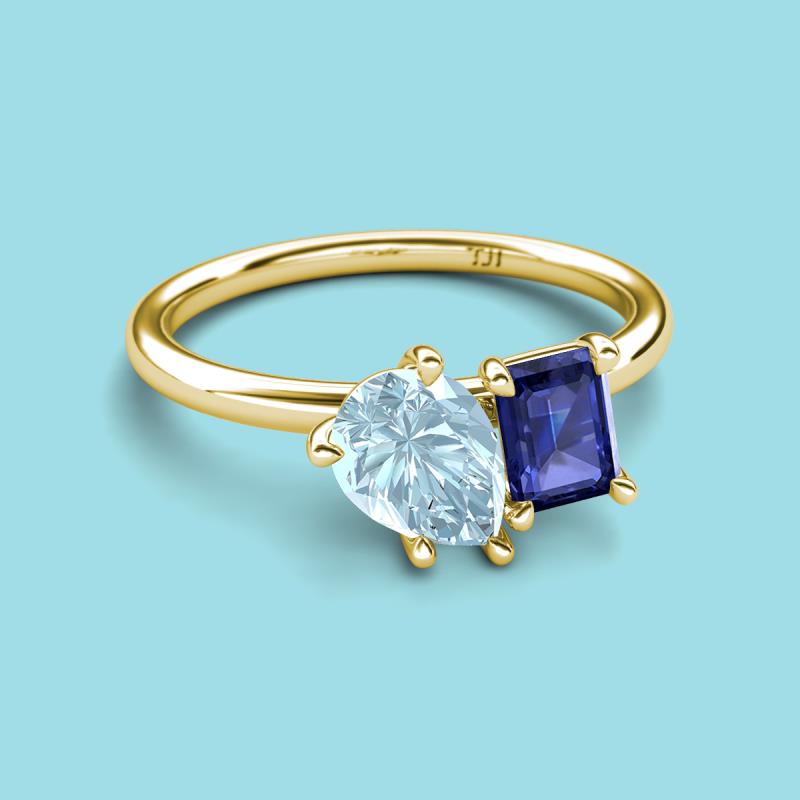 Find a beautiful symbol of everlasting love, with our new collection of duo two-stone ring. A pair of Pear Shape Aquamarine shimmering alongside of a luminous Emerald Shape Iolite crafted beautifully is all set to represent two of you together.
