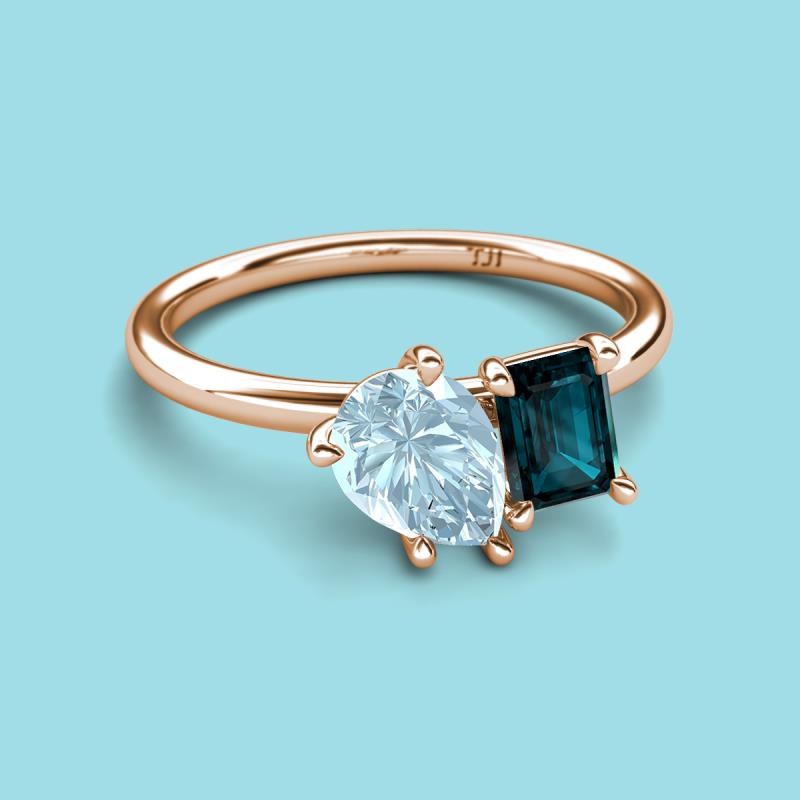 Pear Shape Aquamarine & Emerald Shape London Blue Topaz 2.50 ctw Four Prong Womens 2 Stone Duo Engagement Ring 18K Rose Gold More Details ...