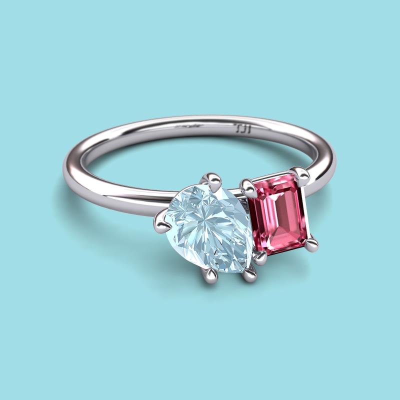 Pear Shape Aquamarine & Emerald Shape Pink Tourmaline 2.30 ctw Four Prong Womens 2 Stone Duo Engagement Ring 18K White Gold More Details ...