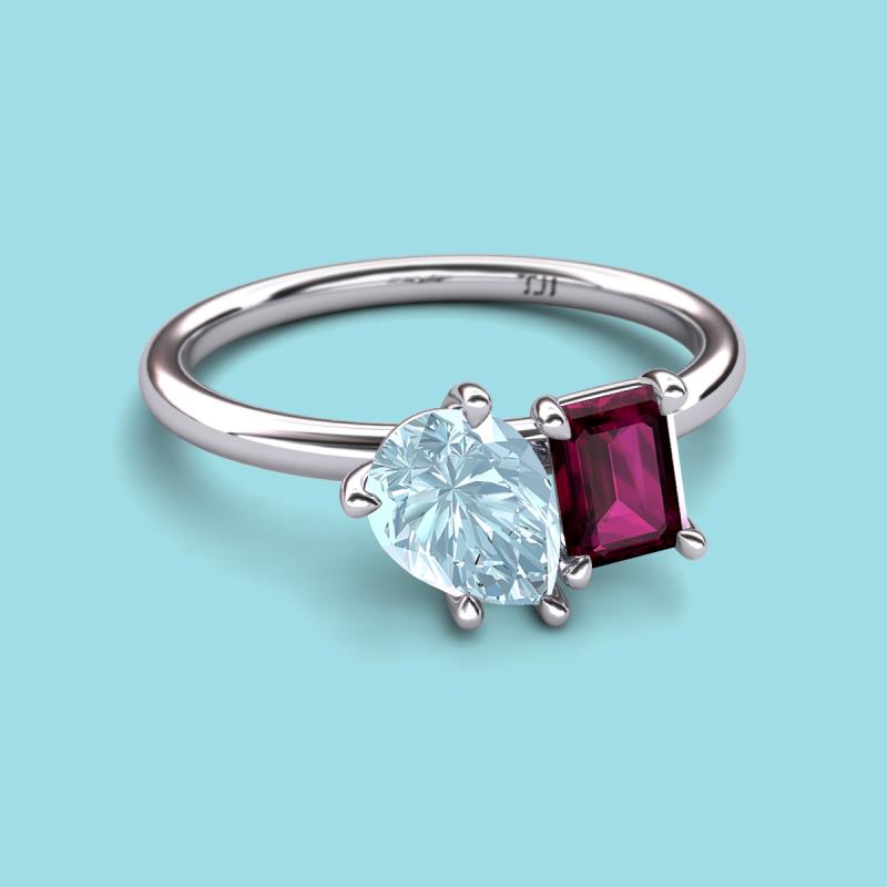 Pear Shape Aquamarine & Emerald Shape Rhodolite Garnet 2.50 ctw Four Prong Womens 2 Stone Duo Engagement Ring 10K White Gold More Details ...