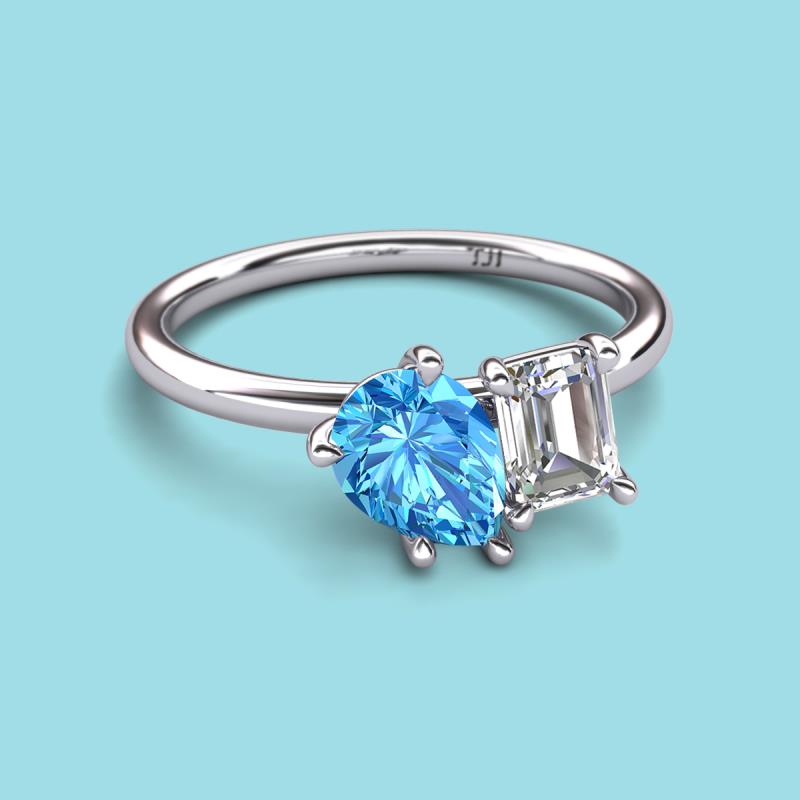Find a beautiful symbol of everlasting love, with our new collection of duo two-stone ring. A pair of Pear Shape Blue Topaz shimmering alongside of a luminous Emerald Shape IGI Certified Lab Grown Diamond crafted beautifully is all set to represent two of you together.