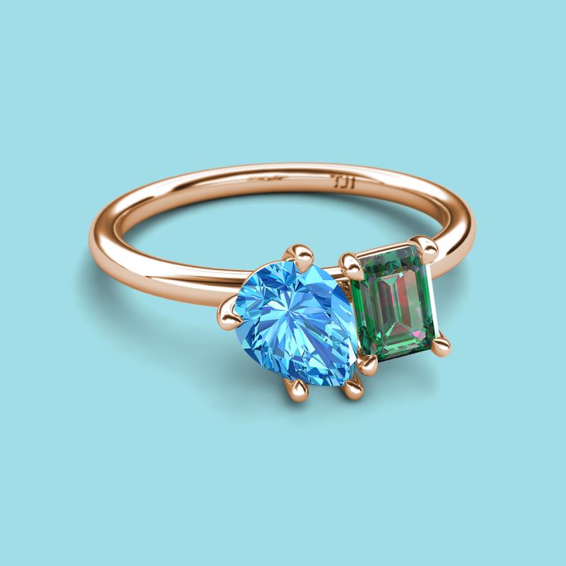 Pear Shape Blue Topaz & Emerald Shape Lab Created Alexandrite 3.05 ctw Four Prong Womens 2 Stone Duo Engagement Ring 18K Rose Gold More Details ...