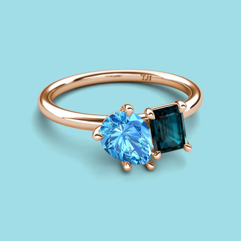 Pear Shape Blue Topaz & Emerald Shape London Blue Topaz 2.95 ctw Four Prong Womens 2 Stone Duo Engagement Ring 18K Rose Gold More Details ...