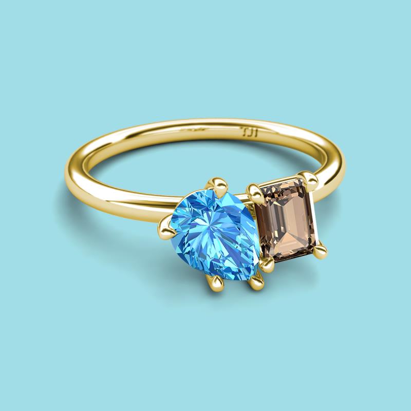 Pear Shape Blue Topaz & Emerald Shape Smoky Quartz 2.65 ctw Four Prong Womens 2 Stone Duo Engagement Ring 10K Yellow Gold More Details ...