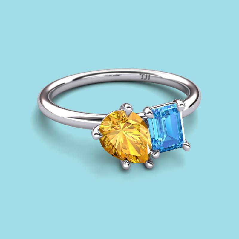 Pear Shape Citrine & Emerald Shape Blue Topaz 2.50 ctw Four Prong Womens 2 Stone Duo Engagement Ring 14K White Gold More Details ...