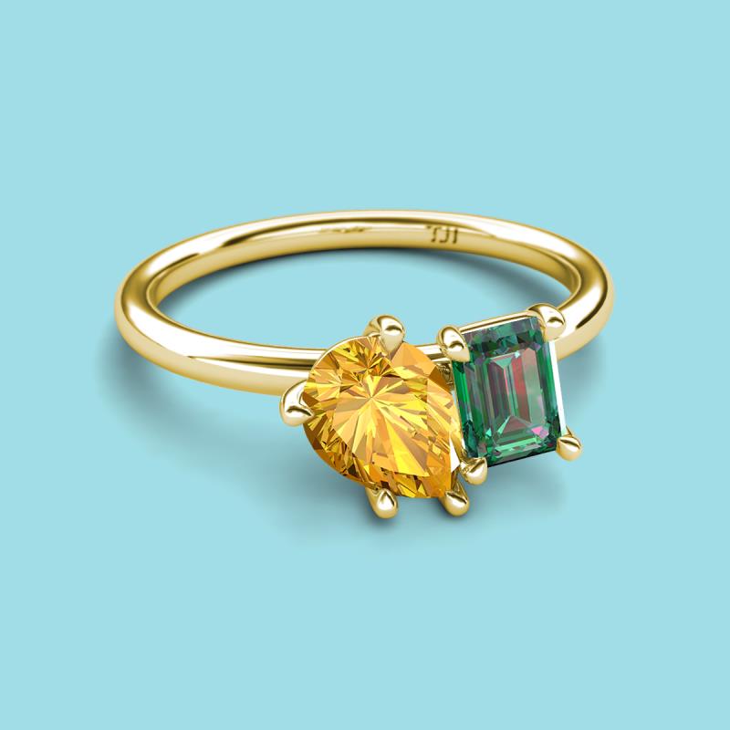 Find a beautiful symbol of everlasting love, with our new collection of duo two-stone ring. A pair of Pear Shape Citrine shimmering alongside of a luminous Emerald Shape Lab Created Alexandrite crafted beautifully is all set to represent two of you together.