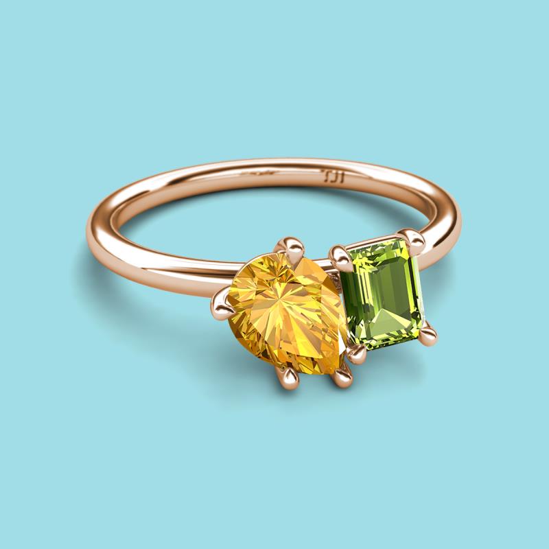 Pear Shape Citrine & Emerald Shape Peridot 2.30 ctw Four Prong Womens 2 Stone Duo Engagement Ring 10K Rose Gold More Details ...