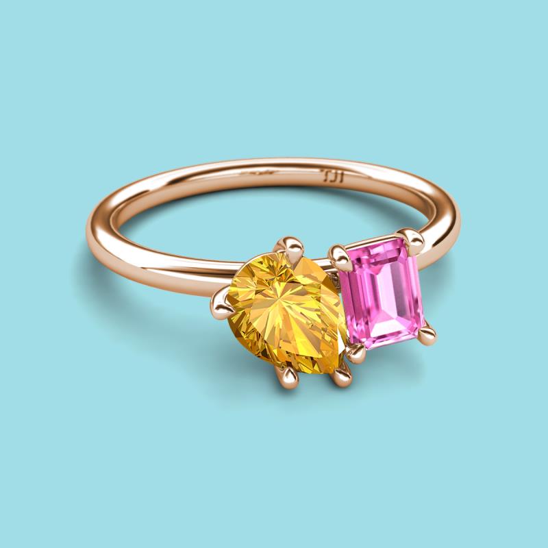 Pear Shape Citrine & Emerald Shape Pink Sapphire 2.20 ctw Four Prong Womens 2 Stone Duo Engagement Ring 10K Rose Gold More Details ...