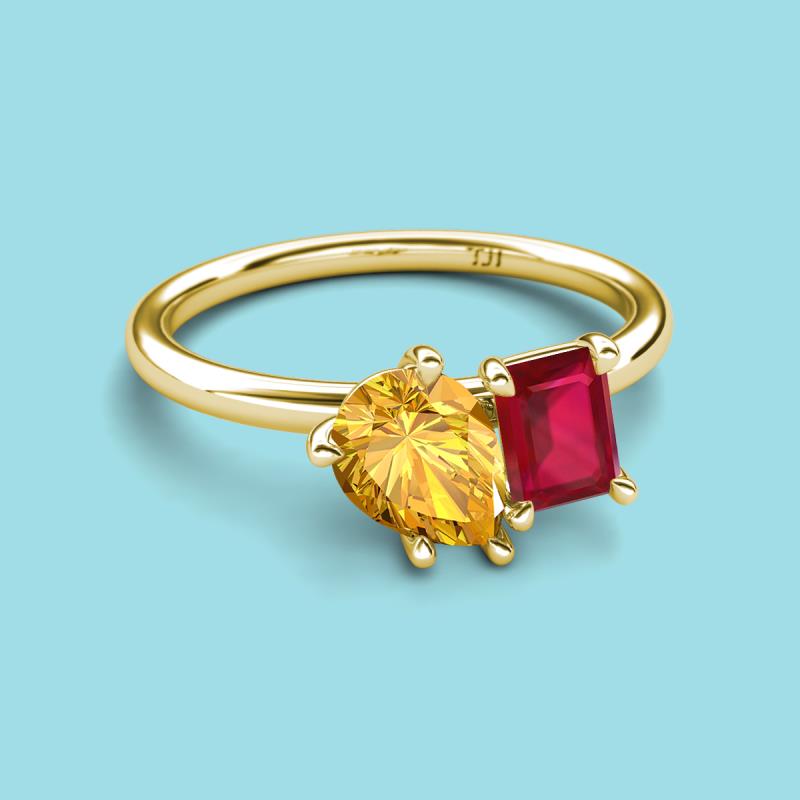 Pear Shape Citrine & Emerald Shape Ruby 2.10 ctw Four Prong Womens 2 Stone Duo Engagement Ring 18K Yellow Gold More Details ...