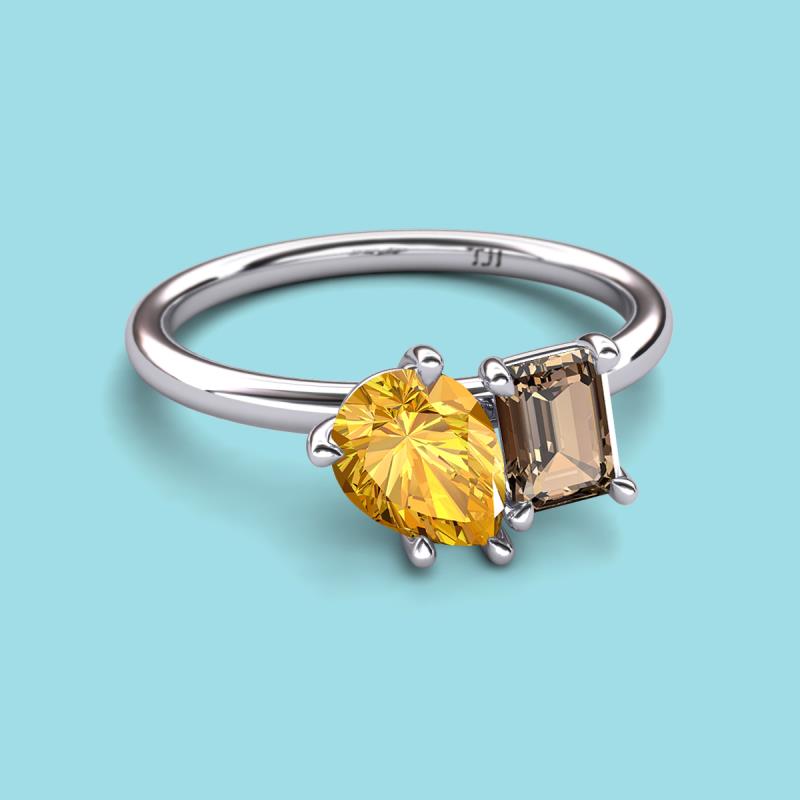 Pear Shape Citrine & Emerald Shape Smoky Quartz 2.20 ctw Four Prong Womens 2 Stone Duo Engagement Ring 14K White Gold More Details ...