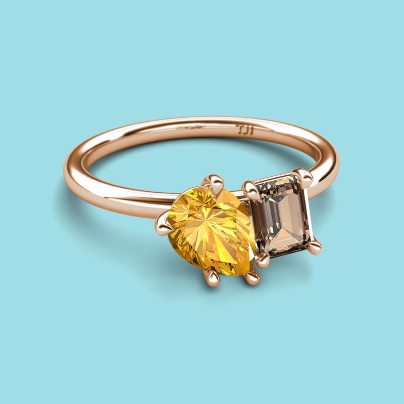 Pear Shape Citrine & Emerald Shape Smoky Quartz 2.20 ctw Four Prong Womens 2 Stone Duo Engagement Ring 18K Rose Gold More Details ...
