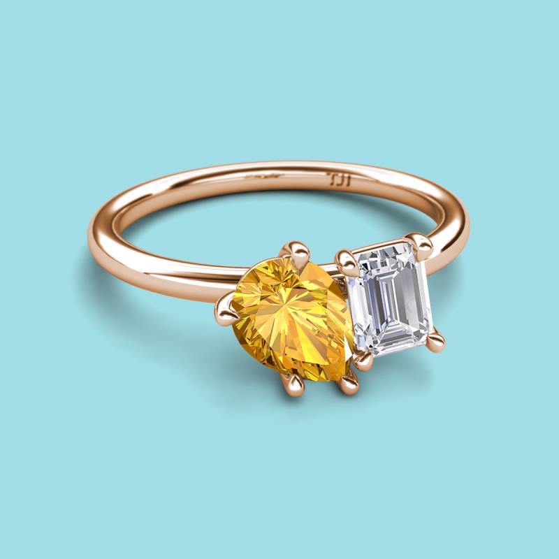 Pear Shape Citrine & Emerald Shape White Sapphire 2.20 ctw Four Prong Womens 2 Stone Duo Engagement Ring 14K Rose Gold More Details ...