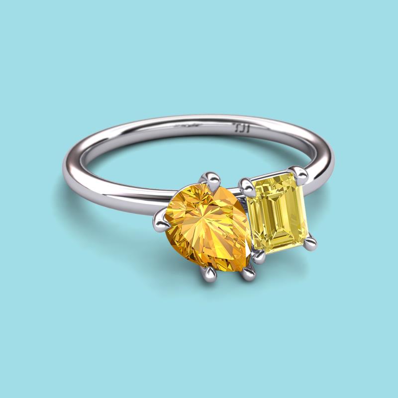Pear Shape Citrine & Emerald Shape Yellow Sapphire 2.20 ctw Four Prong Womens 2 Stone Duo Engagement Ring 18K White Gold More Details ...