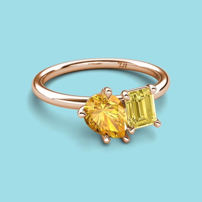Pear Shape Citrine & Emerald Shape Yellow Sapphire 2.20 ctw Four Prong Womens 2 Stone Duo Engagement Ring 10K Rose Gold More Details ...
