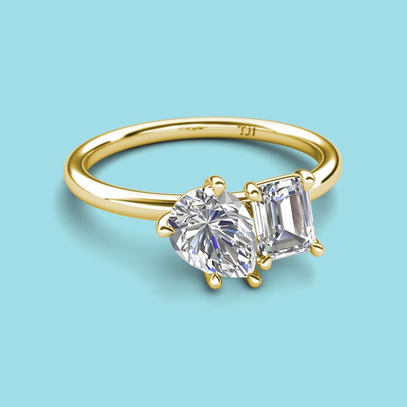 Pear Shape GIA Certified Diamond & Emerald Shape Forever Brilliant Moissanite 2.60 ctw Four Prong Womens 2 Stone Duo Engagement Ring 10K Yellow Gold More Details ...