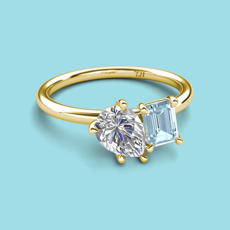 Pear Shape IGI Certified Lab Grown Diamond & Emerald Shape Aquamarine 2.60 ctw Four Prong Womens 2 Stone Duo Engagement Ring 10K Yellow Gold More Details ...