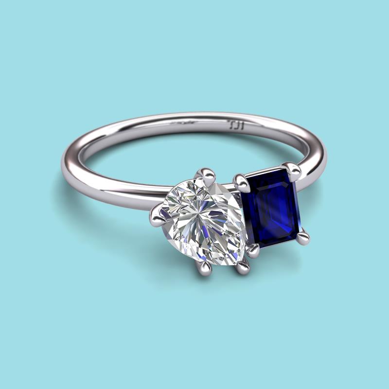 Find a beautiful symbol of everlasting love, with our new collection of duo two-stone ring. A pair of Pear Shape IGI Certified Lab Grown Diamond shimmering alongside of a luminous Emerald Shape Blue Sapphire crafted beautifully is all set to represent two of you together.