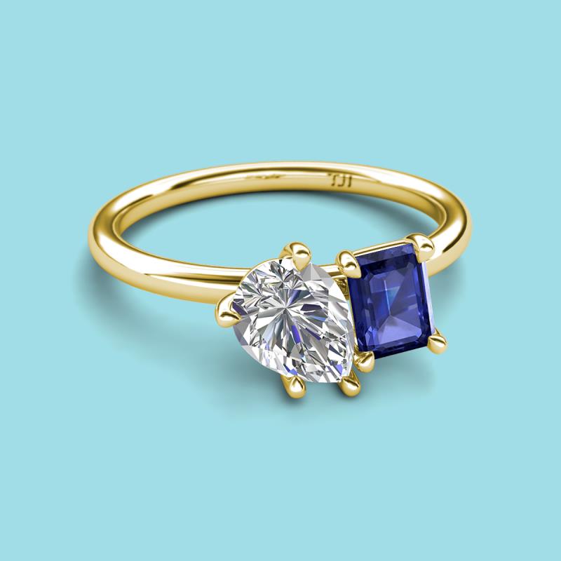 Find a beautiful symbol of everlasting love, with our new collection of duo two-stone ring. A pair of Pear Shape IGI Certified Lab Grown Diamond shimmering alongside of a luminous Emerald Shape Iolite crafted beautifully is all set to represent two of you together.
