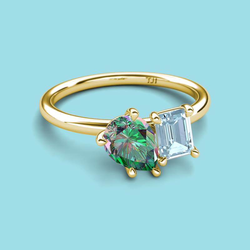 Pear Shape Lab Created Alexandrite & Emerald Shape Aquamarine 2.53 ctw Four Prong Womens 2 Stone Duo Engagement Ring 18K Yellow Gold More Details ...