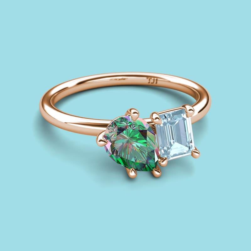 Pear Shape Lab Created Alexandrite & Emerald Shape Aquamarine 2.53 ctw Four Prong Womens 2 Stone Duo Engagement Ring 10K Rose Gold More Details ...